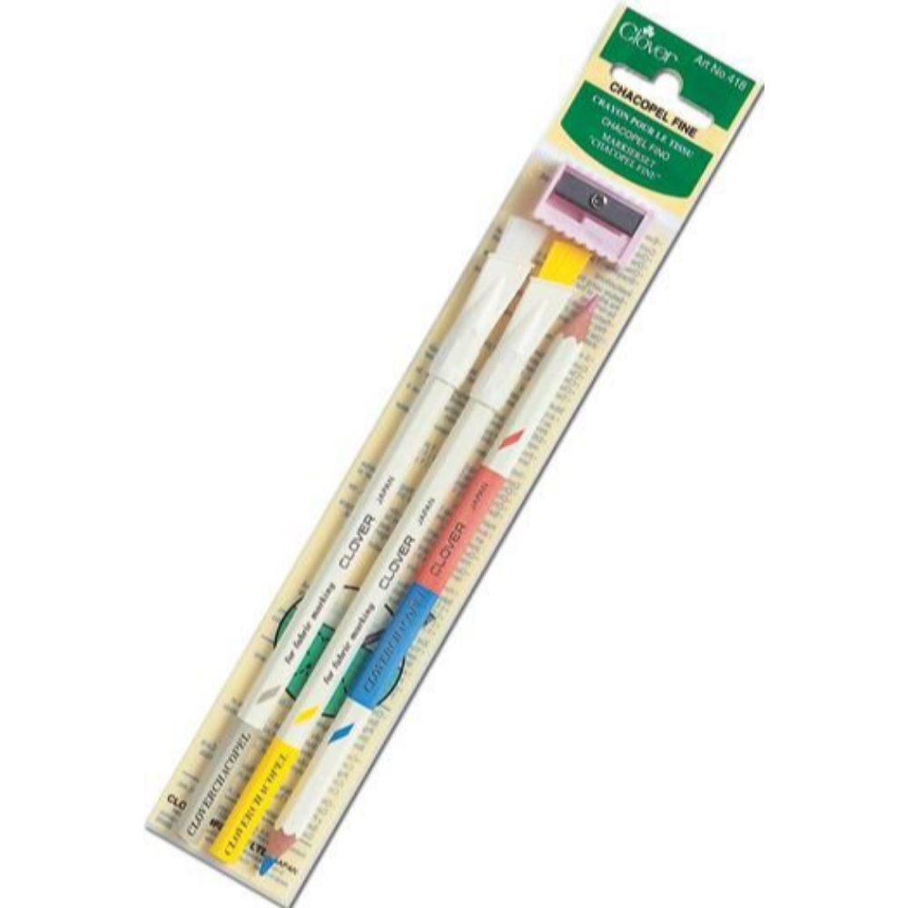 For fine line markings on fabric. Remove marking before ironing. Use laundry neutral detergent to remove markings. Contains 1 white, 1 yellow, 1 pink and blue and 1 sharpener.