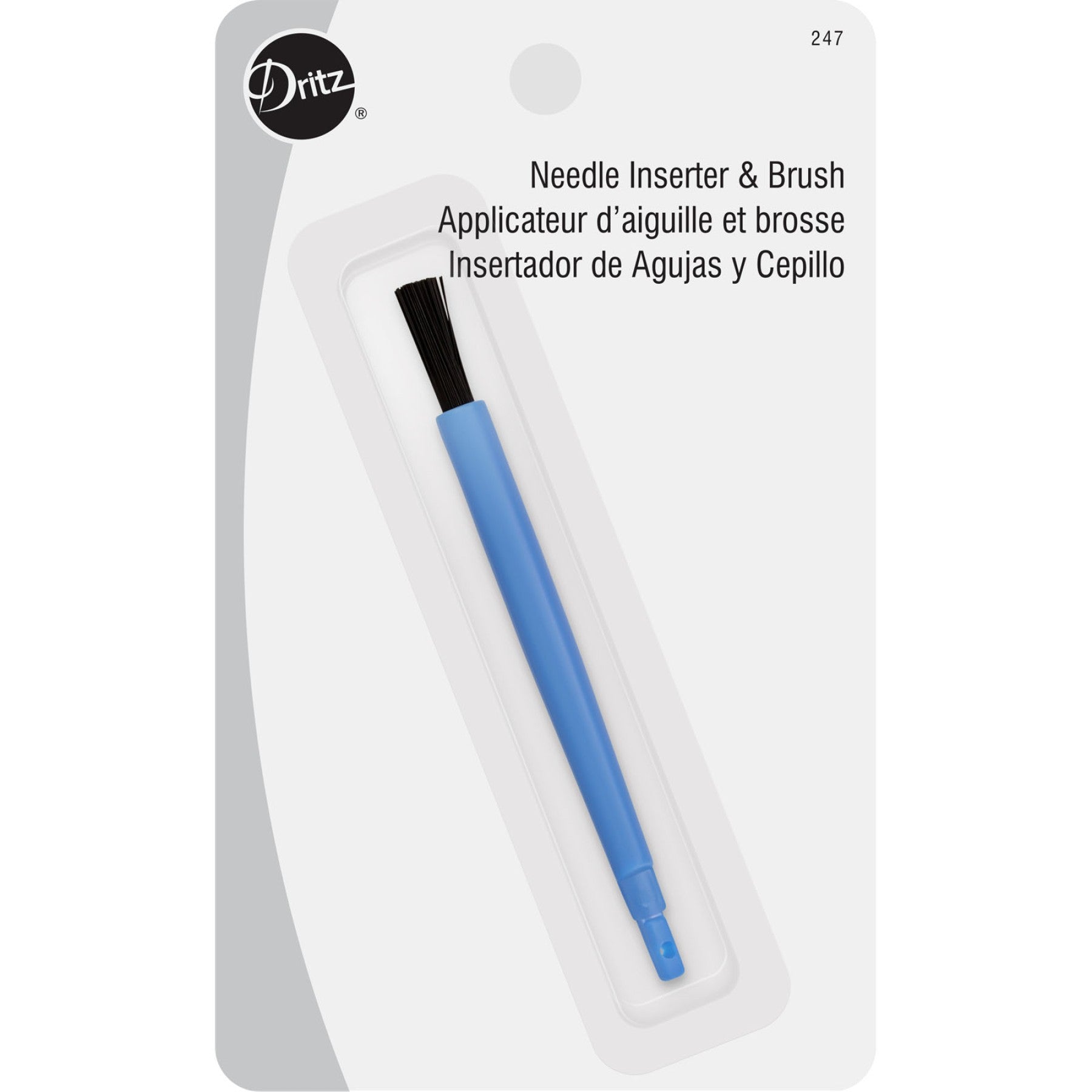Holds machine needle for easy insertion. Fits where fingers can't. Use brush to remove lint from sewing machine or serger.