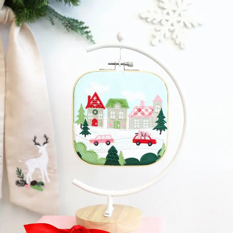 Frame your sewing, quilting, and embroidery projects in Kimberbell’s Bamboo Square Hoop! This exclusive 6” wooden hoop features gold hardware and a lip to keep your project taut. Designed especially for the Joyride design from Kimberbell’s Comfort & Joy event, this darling hoop is also perfect for a variety of craft projects!