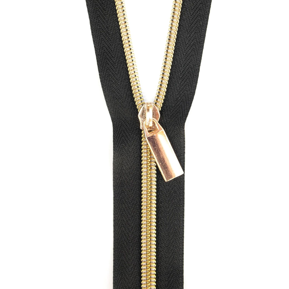 Sallie Tomato - 3 Yard Zippers | Black with Gold Coil