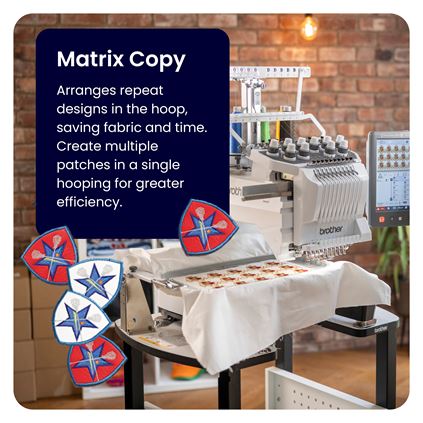 • Matrix Copy Feature The Matrix Copy feature allows you to add multiple copies of the same design to your project. It automatically places repeat designs for maximum efficiency, meaning you waste less fabric and time, and can create multiple patches in one hooping.
