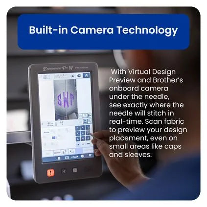 • Built-in Camera Feature Allows you to get a real time camera view of the needle. Virtually preview your design on fabric.