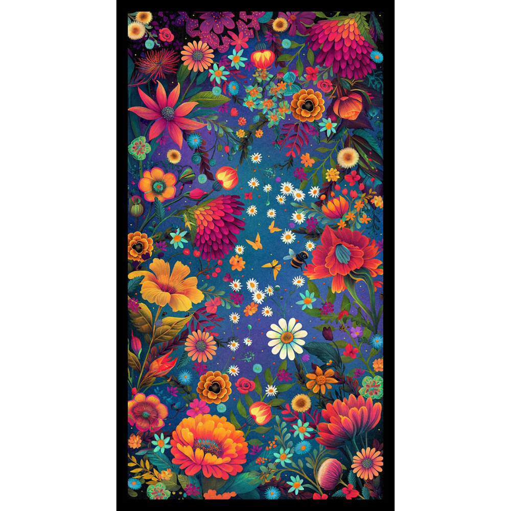 Luminous Haven - Panel with Flowers and Bugs Dark Blue | 4463P-77