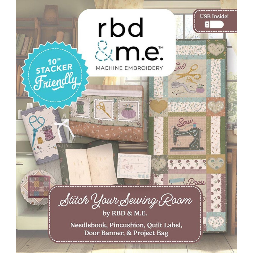 Create a beautifully coordinated sewing space with this RBD&ME collection designed to stitch every project on this USB using just one 10" stacker!