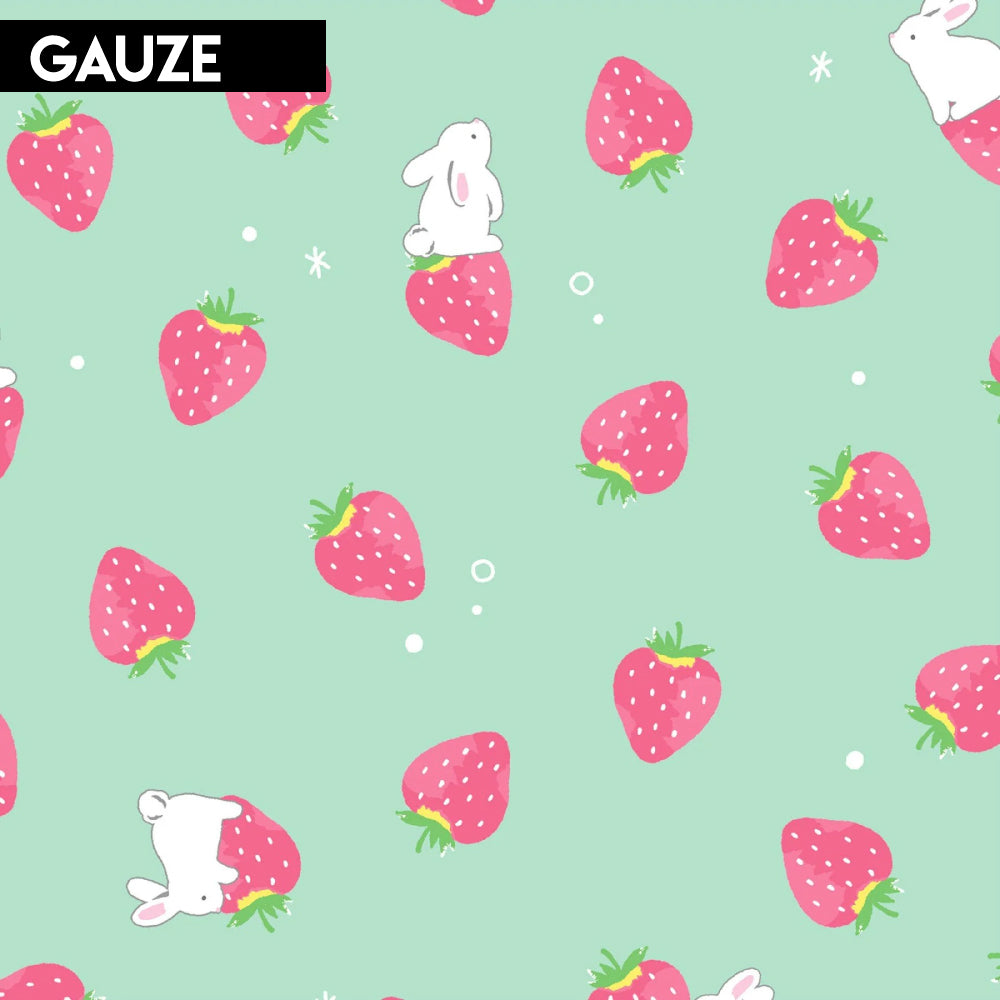 Whales & Rabbits Double Gauze - Bunnies & Strawberries Green | COSAP51106-2D